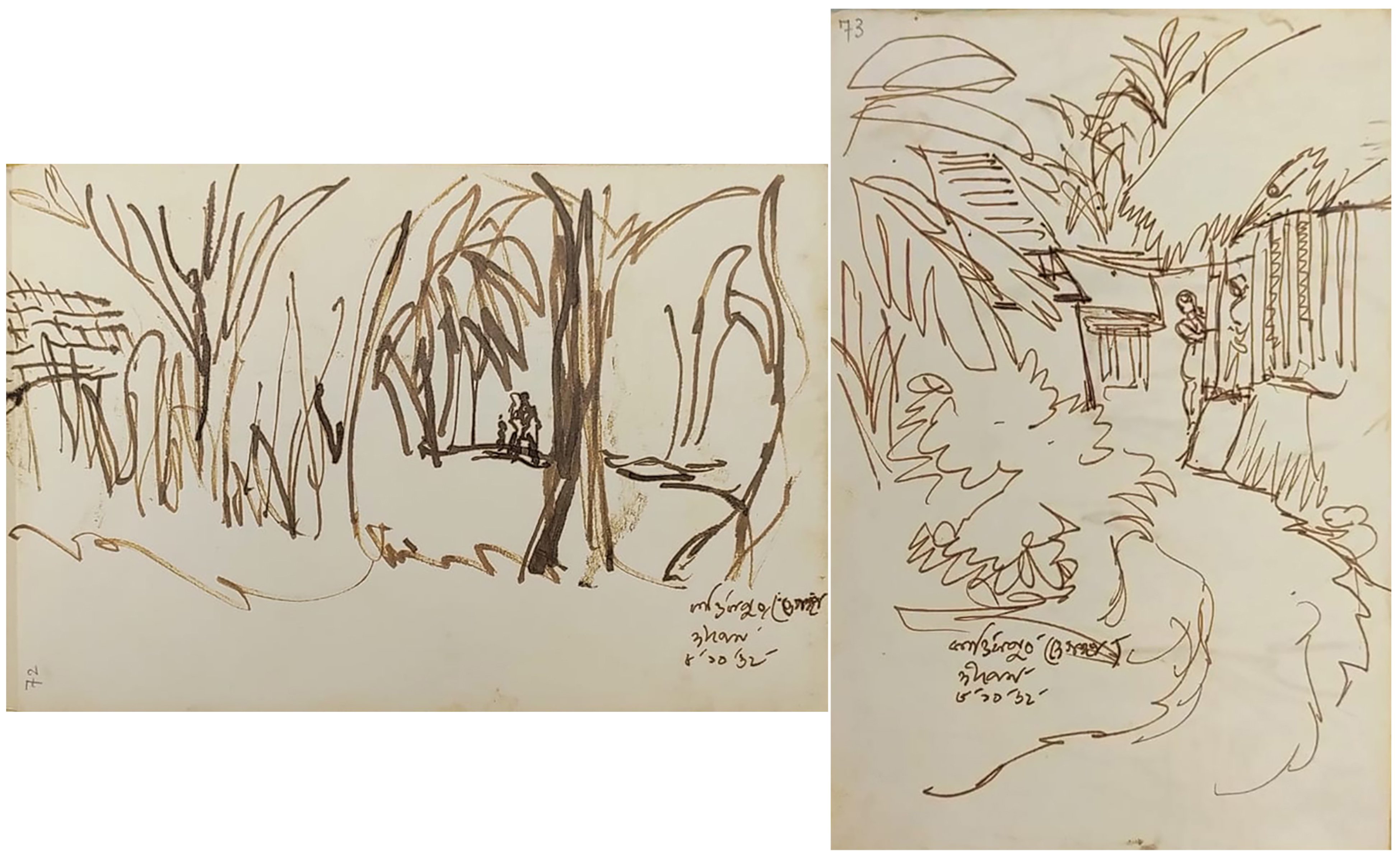 Paintings on both sides of the paper